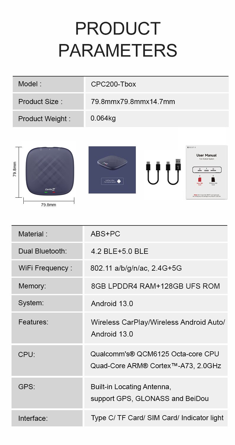 If You’re Looking For A High-Performance Multimedia Video Box, Then The CPC200-Tbox Plus With Android 13.0 Is The One For You. We’ve Listened To Our Customers And Optimized The Tbox’s Android 9.0 System To Bring You The Tbox Plus, Which Boasts Faster And Smarter Capabilities. We’ve Also Added The Superior Qualcomm 8-Core Chip To Further Enhance Its Performance. With Nearly Double The Speed And Fewer Issues Than The Tbox, The Tbox Plus Is More Powerful Than Ever. However, We Remind Our Customers That, As Always, It’s Important To Prioritize Safety And Keep Your Focus On The Road If You’re Driving.